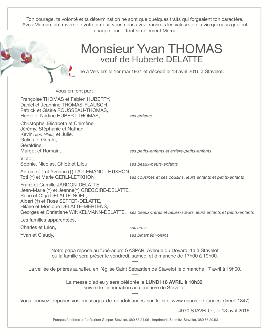 Décédé à Malmedy (4960) le mercredi 13 avril 2016 à l'âge de 84 ans