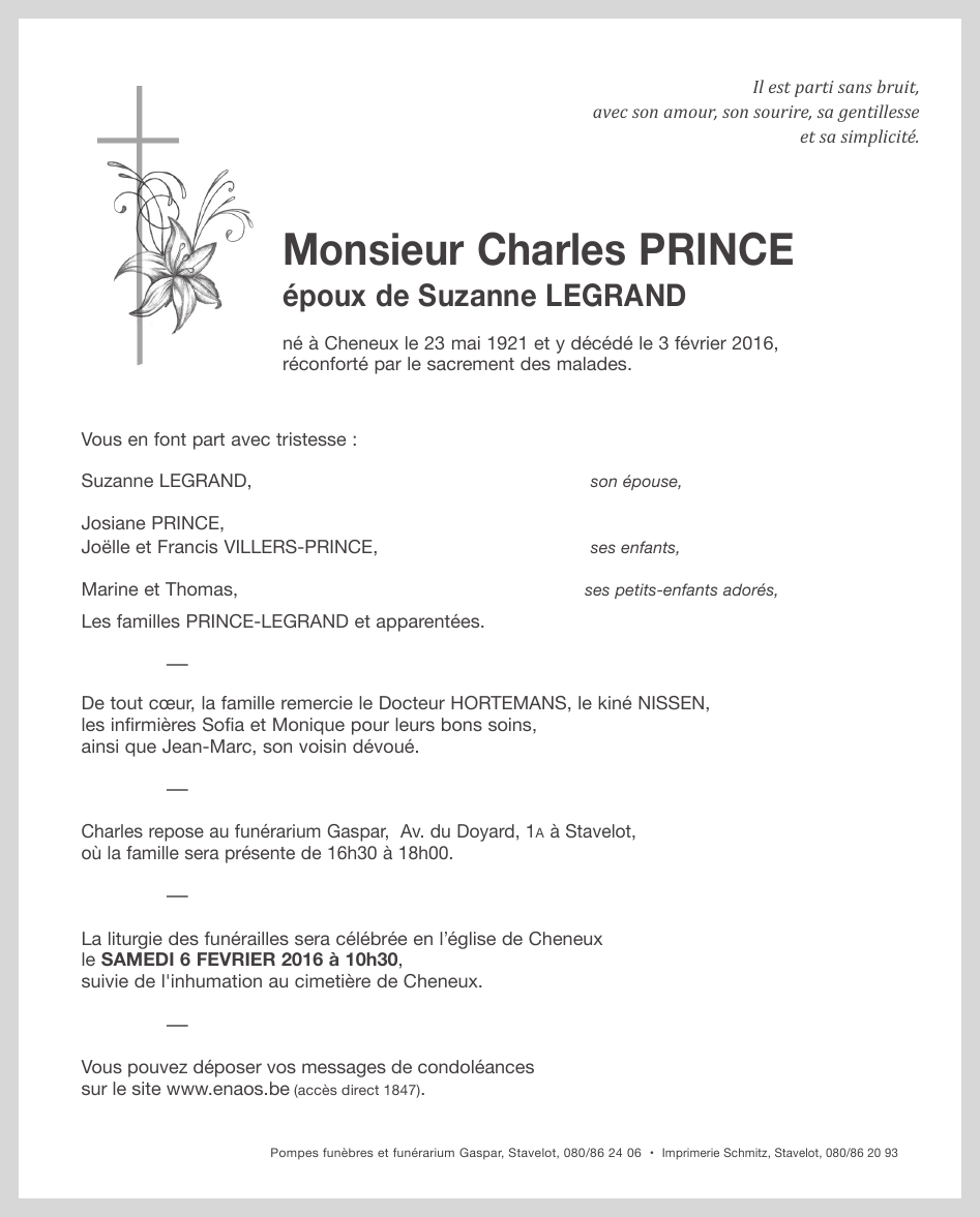 Décédé à Cheneux (4987) le mercredi 3 février 2016 à l'âge de 94 ans