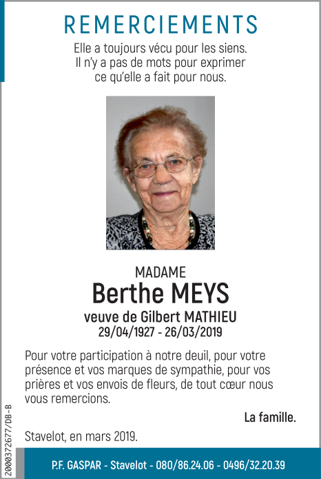 Madame Berthe MATHIEU née MEYS